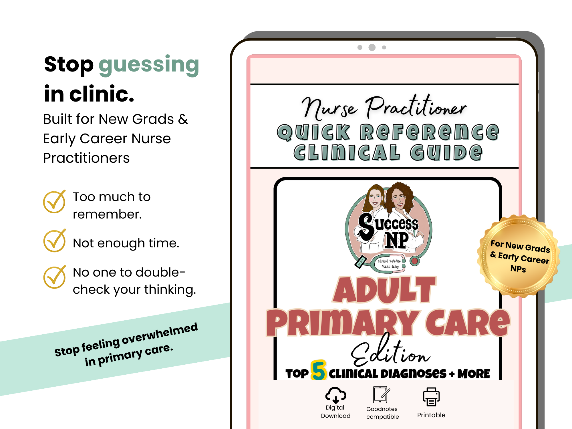 Master adult primary care and women’s health with this Adult & Women’s Health Clinical Guide Bundle for Nurse Practitioners. Designed for NP students, new graduate NPs, and primary care providers, this bundle combines two comprehensive guides into one organized, real-world clinical reference.