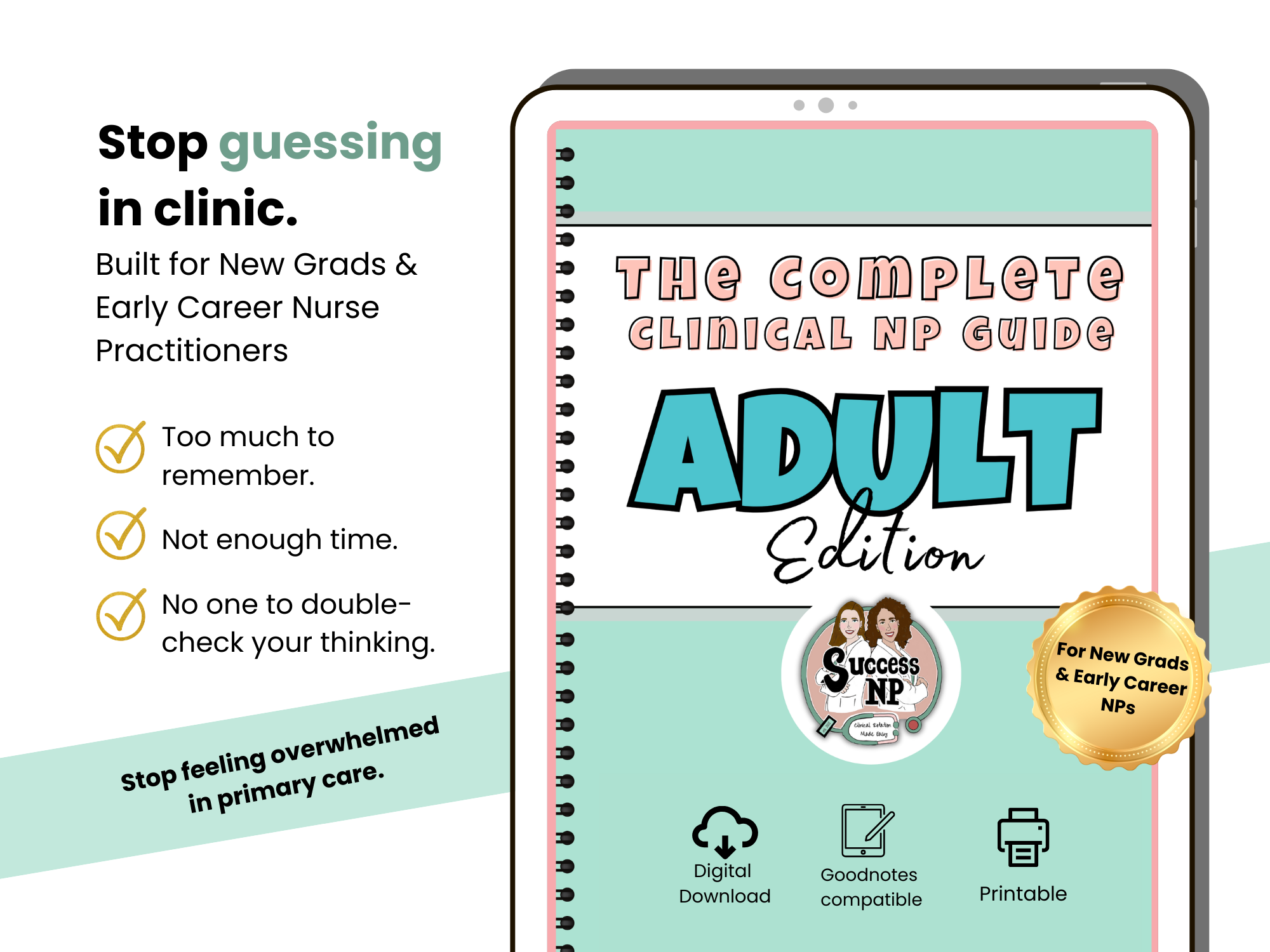 Stop guessing in clinic. This 89-page Adult & Geriatric Clinical Guide is designed for NP students and new Nurse Practitioners who want confidence in real-world patient care — not just exam prep.